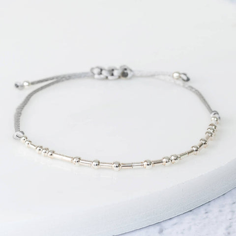 Available with silver plated, rose gold plated or sterling silver beads on grey cord. It is also available in a different style in a separate listing, with sterling silver chain instead of grey cord.